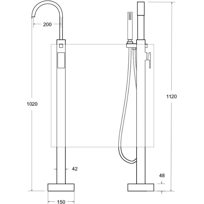 Baterie Cada Besco Freestanding Modern Ii Negru Mat, Set Instalare In Pardoseala Inclus