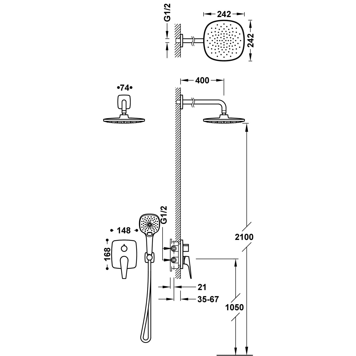 Sistem dus baterie Incastrata Canigo Plus TRES crom monocomanda